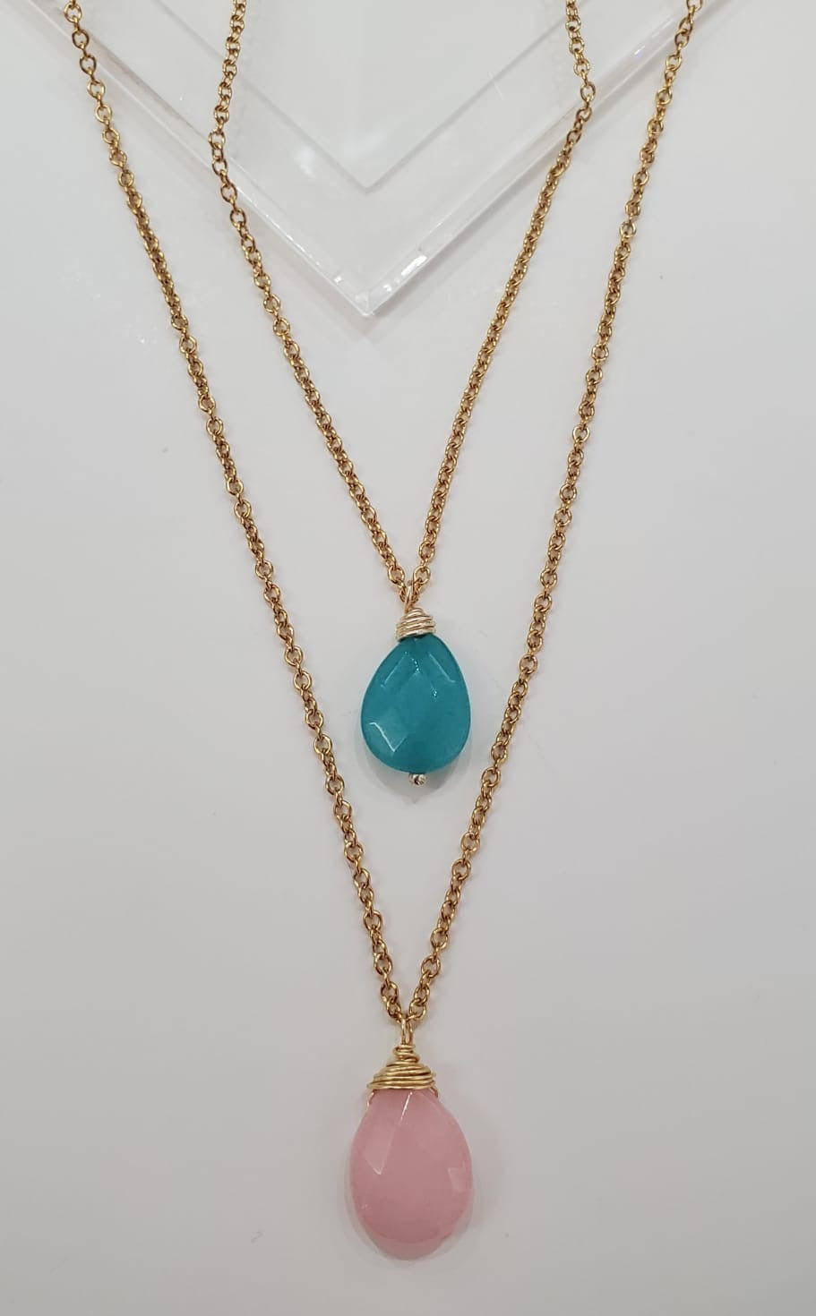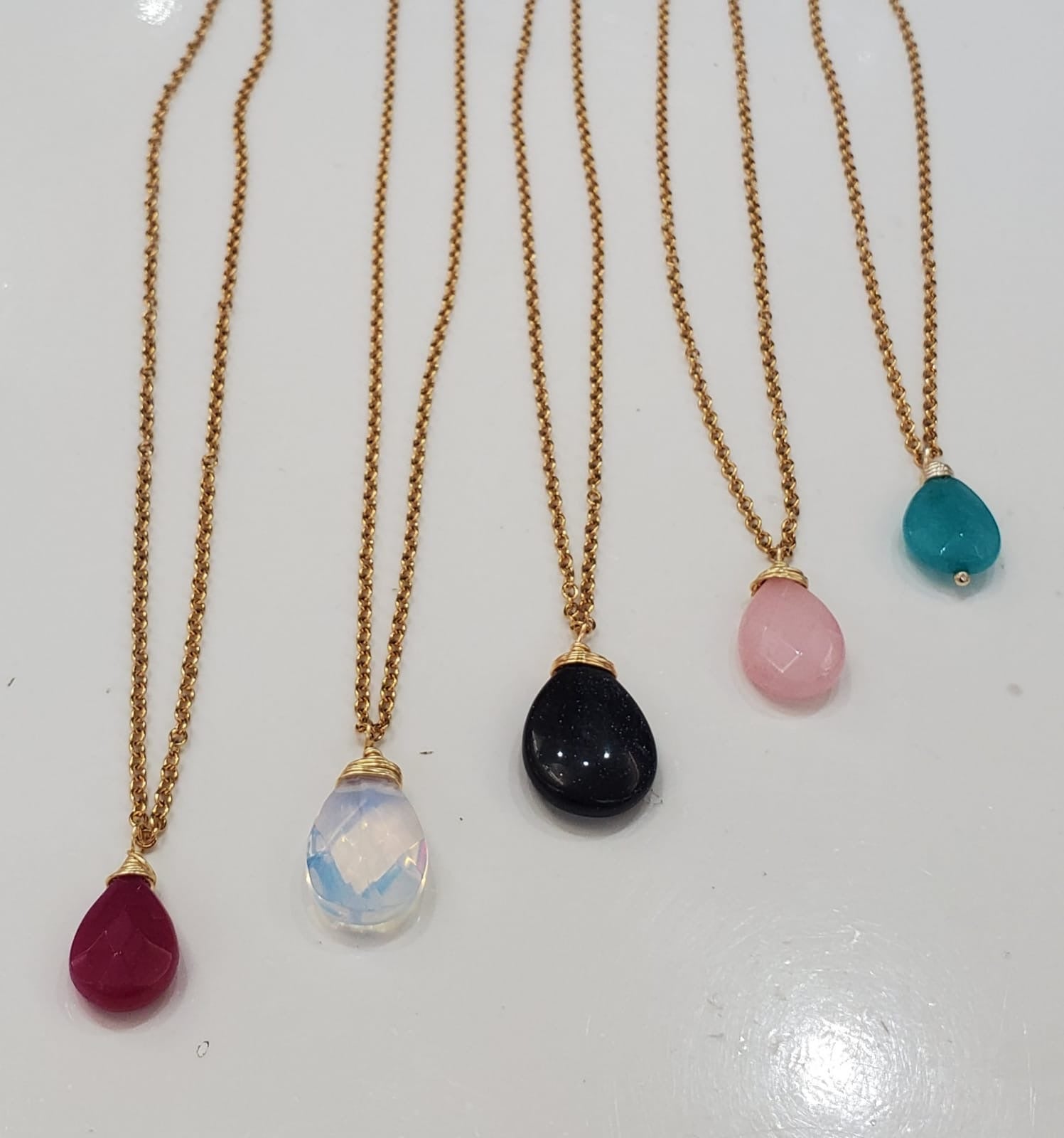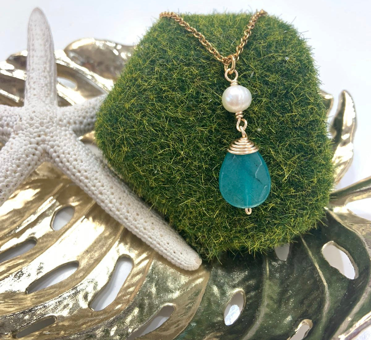 Pieza alambrada a mano con cuarzo Jade original en cadena stainless steel. Excelente joyería que no se despinta y tiene un bello color precioso. Las prendas incluyen una perla originales de agua dulce. La cadena tiene un tamaño de 20" pulgadas de largo. Resistentes al agua.
