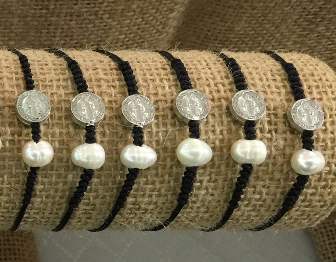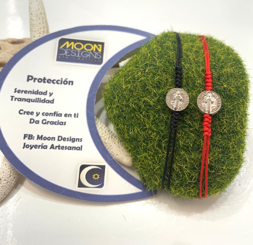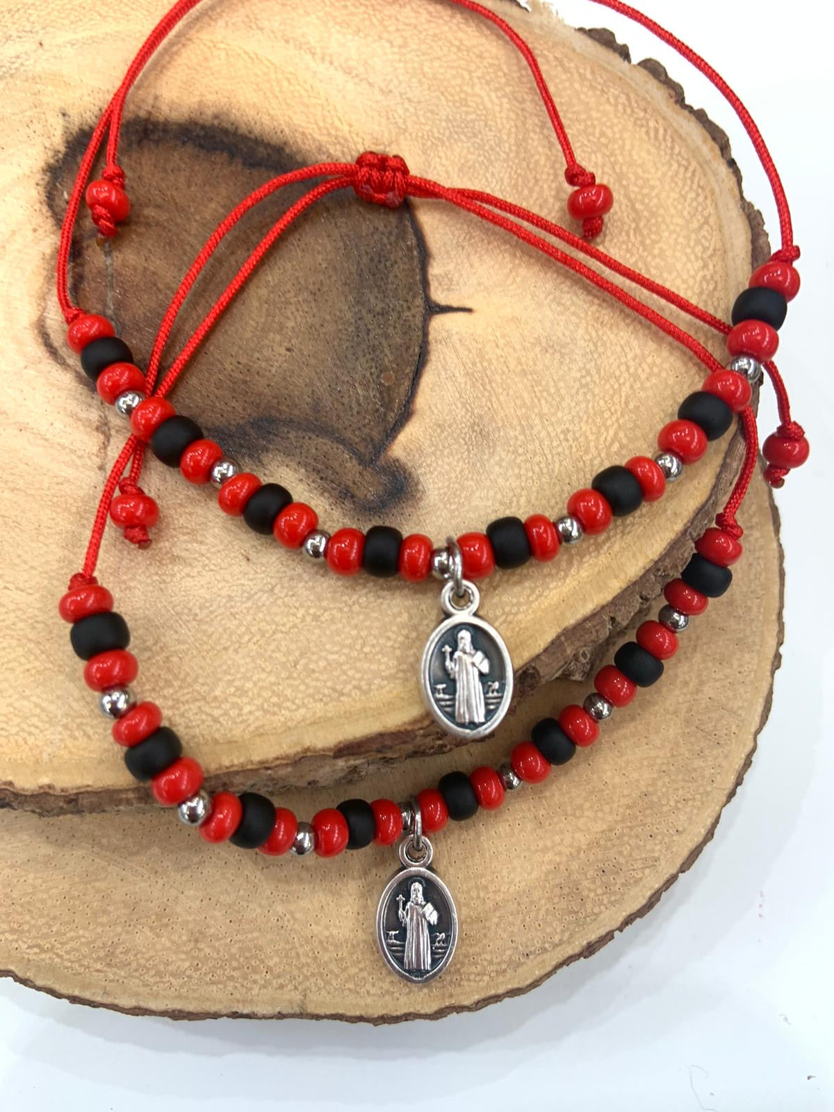 Pulsera para la protección, confeccionada en hilo nylon ajustable, con detalles enchapados de plateado. El color rojo es para la protección de las energía positiva y el color negro es para la serenidad y la tranquilidad. Ten Fé y Confía en ti.