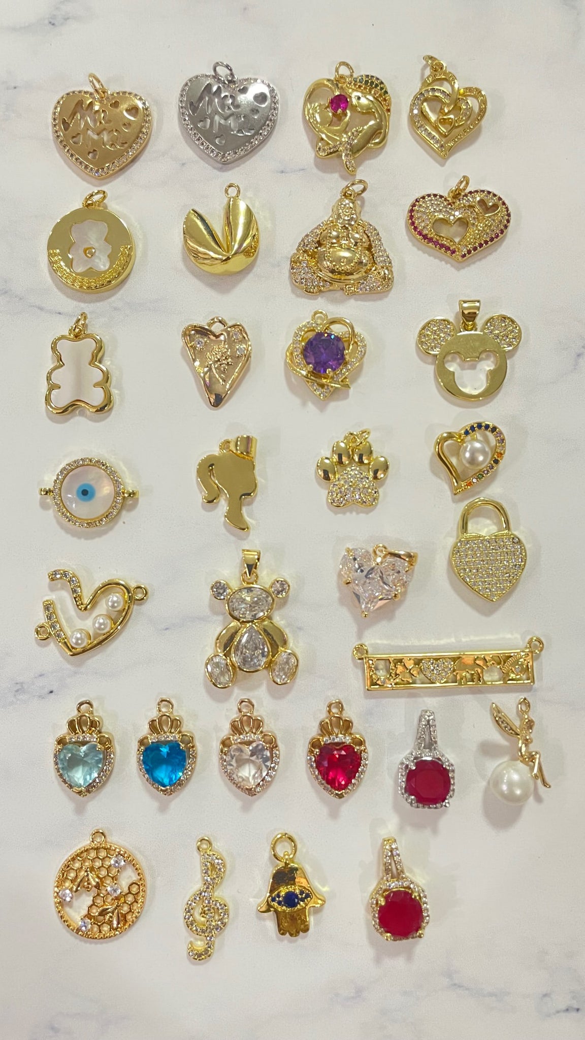 Variedad de dijes a escoger. Cada charms es enchapados en oro 18K combinados con zirconias.
