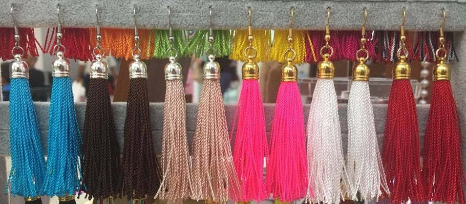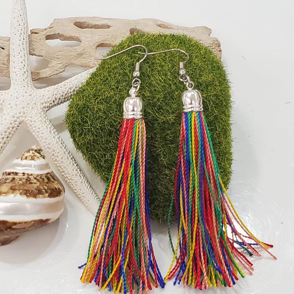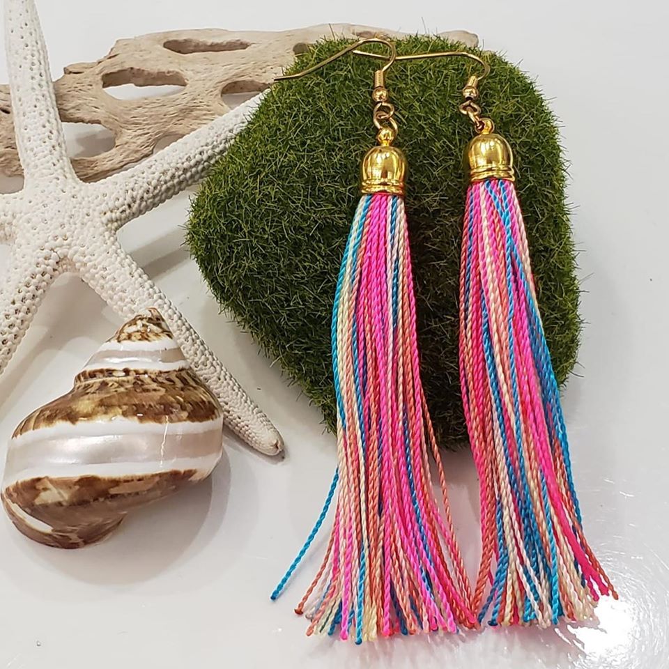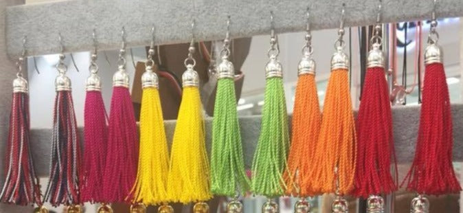Hermosas pantallas confeccionadas con hilo nylon en forma de borla. Estas piezas realizadas con ganchos de pantallas en acero inoxidable por lo que son resistentes al agua y piezas en "silver plated"..