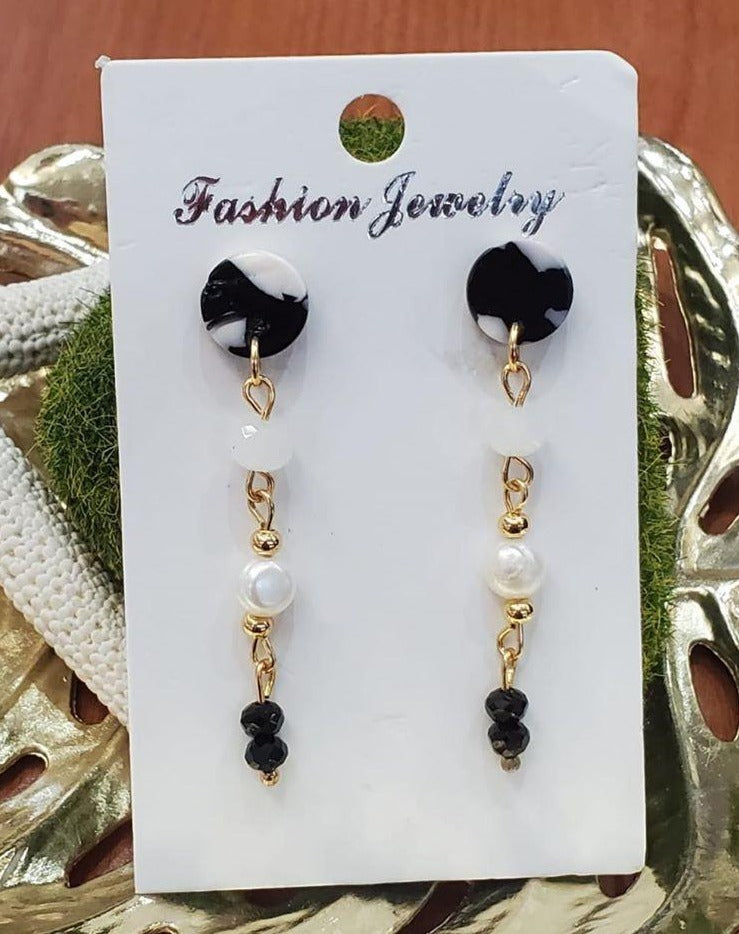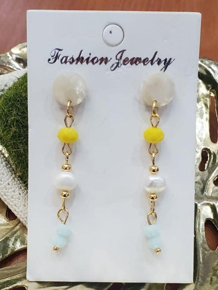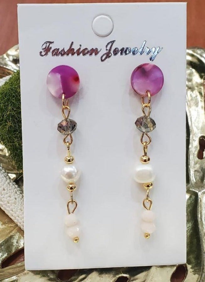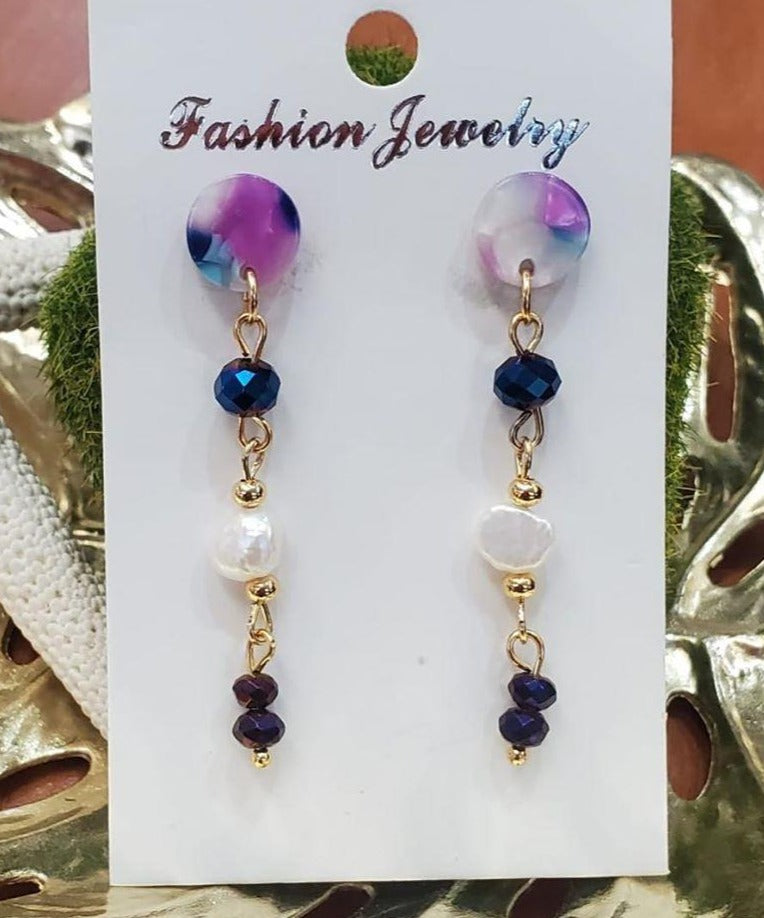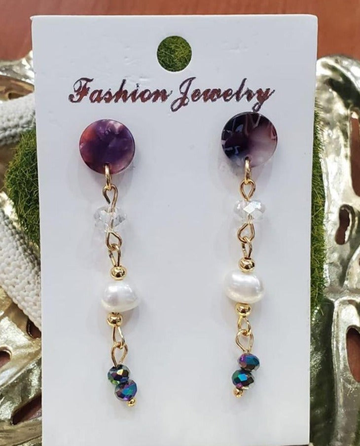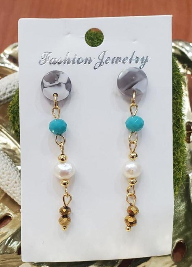 Hermosas pantallas confeccionadas con resina marmoleada circular. Esta pieza también está acompañada con cristales y perlas originales de agua dulce alambradas a mano. Estas piezas están realizadas con detalles en stainless steel por lo que son resistentes al agua y al sudor.