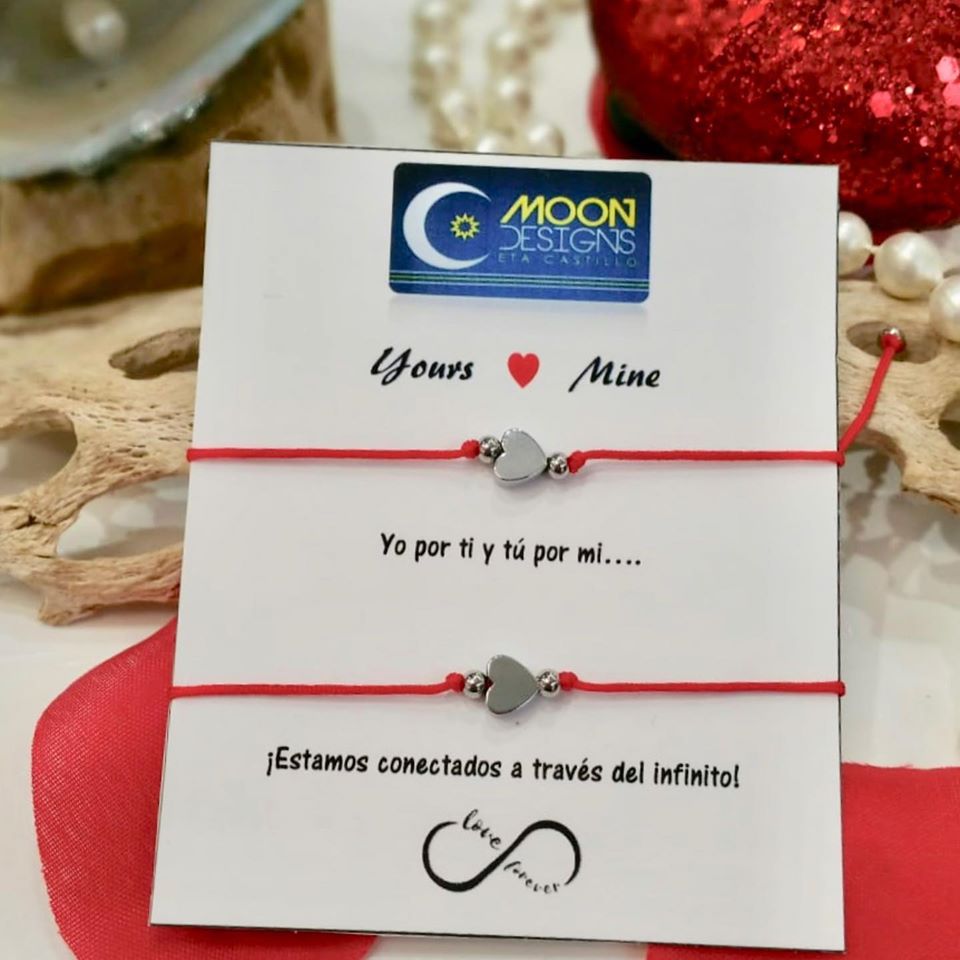 Set de dos pulseras confeccionadas a mano con unos charms de corazón en cuarzo hematite y montadas en hilo de nylon ajustable. Excelente joyería para regalar a mejores amigos, pareja, Mamá e hija. Estas piezas no se despinta, tiene un bello y delicado estilo. Sus separadores plateados son en "stainless steel". Resistentes al agua.