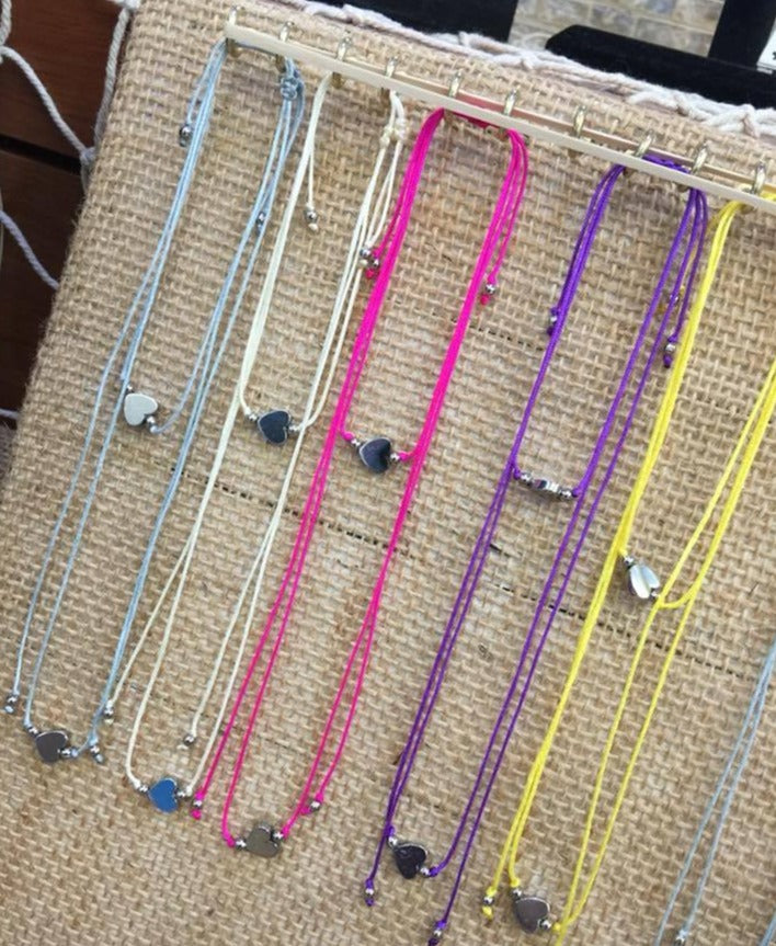 Set de collar y pulsera confeccionados a mano con charms de un corazón en cuarzo hematite y montadas en hilo de nylon ajustable. Excelente joyería para regalar en cualquier ocasión especial. Este set es muy versátil por lo que puedes utilizarlo para el diario, para la playa, para la piscina o para salir. No se despinta. Sus separadores plateados son en baño en plata u oro. Resistentes al agua.